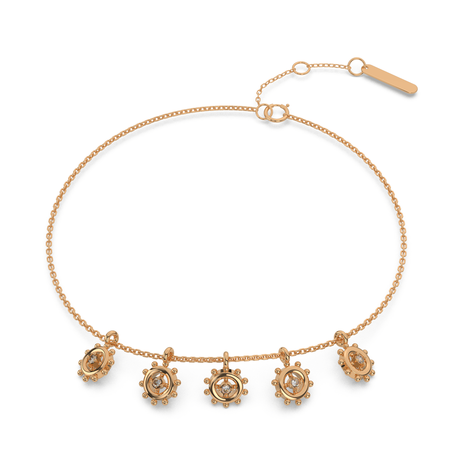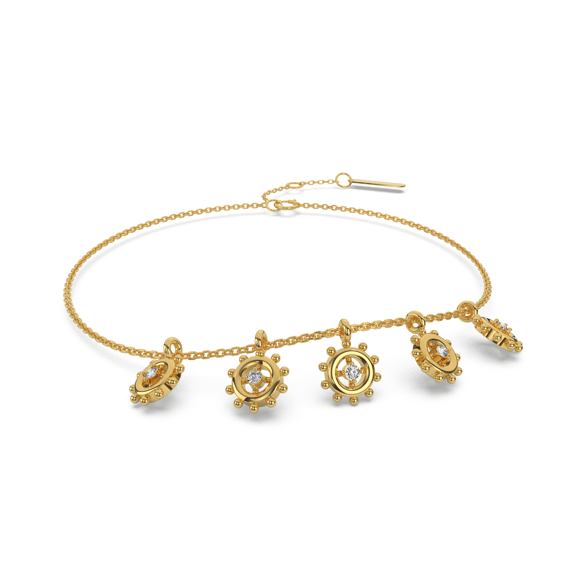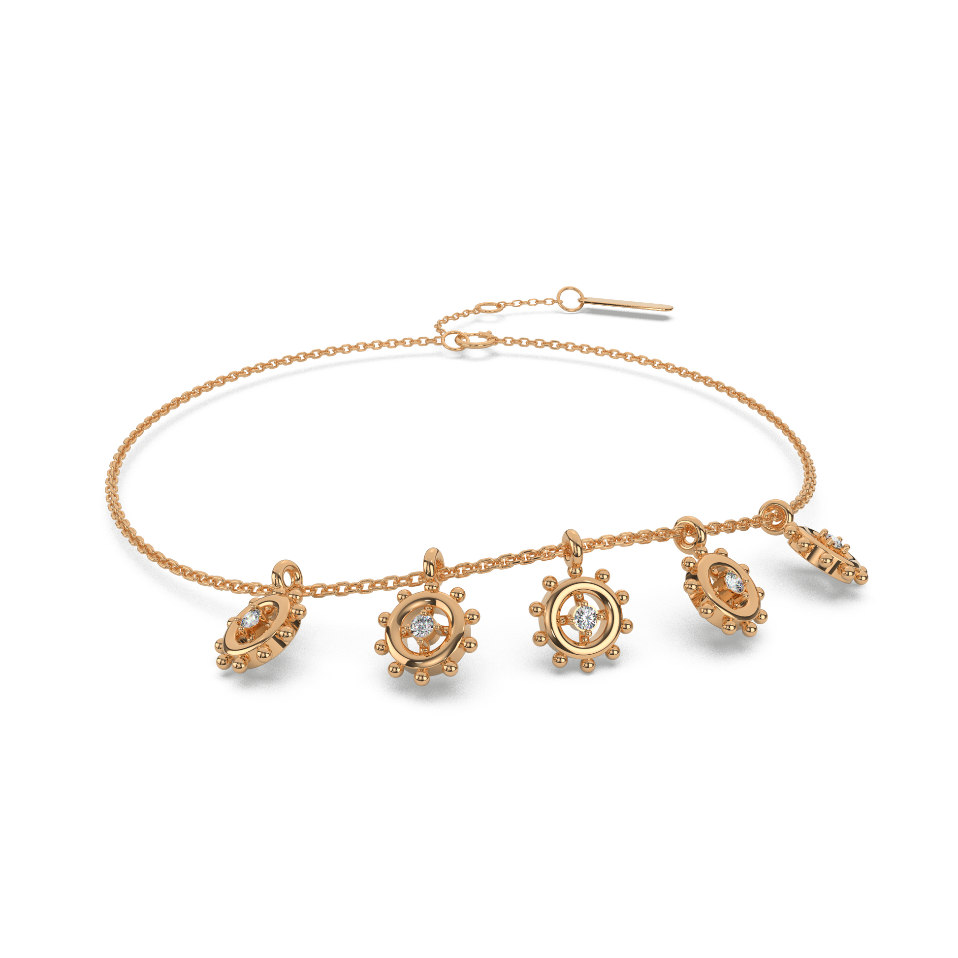 We offer 18-karat jewellery in yellow, rose & white colors. 75 percent is pure Swiss gold and the remaining 25 percent is the master alloy that gives color to the gold.